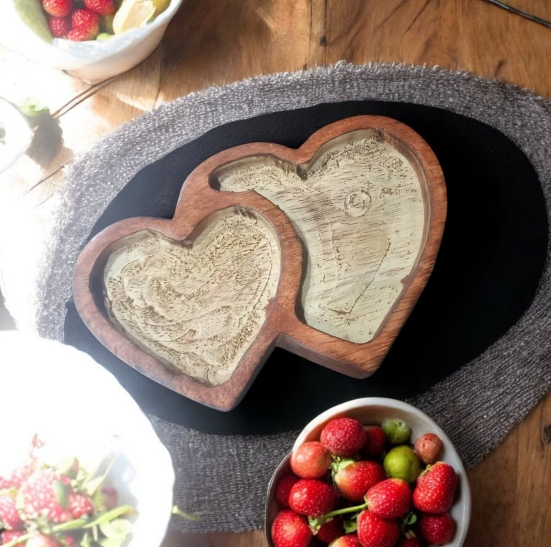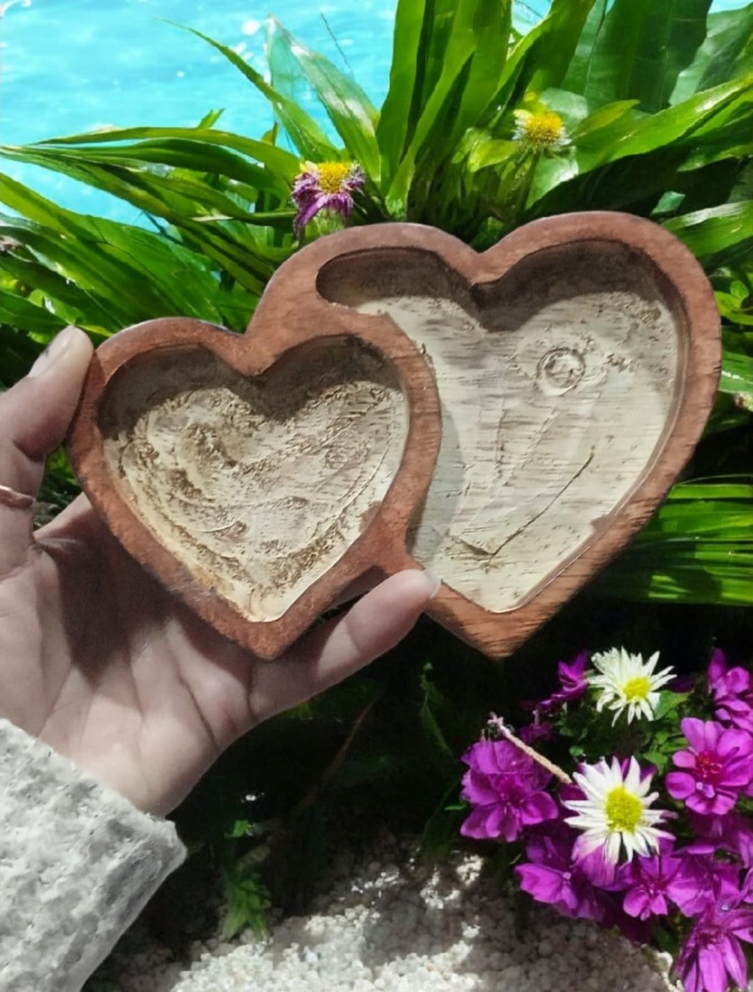 MonkeyCrafts Hand-Carved Double Heart Wooden Dough Bowl